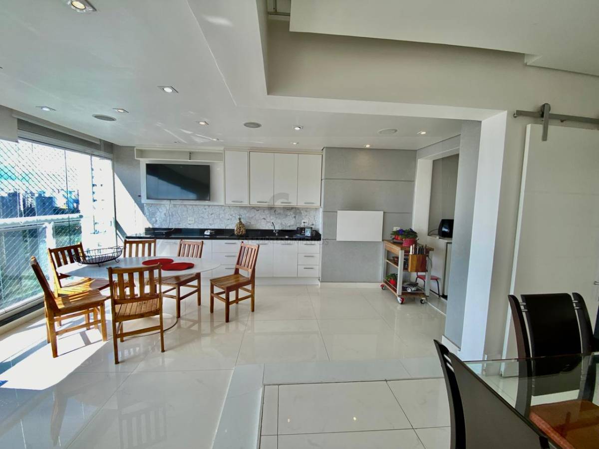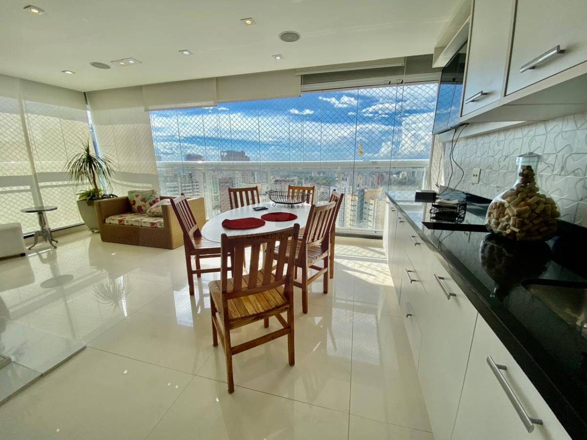Apartamento com 3 suítes , lavabo, sala para 3 ambientes , com conceito aberto para área gourmet. Cozinha integrada à churrasqueira e lavanderia com quarto e banheiro de serviço. Ar condicionado em todos os ambientes. Elevador com senha. Edifício com estrutura de lazer completa. Piscina coberta e aquecida com raias de 25 metros, Piscinas adulto e infantil externa e quadra poliesportiva. Sauna e ofurô.