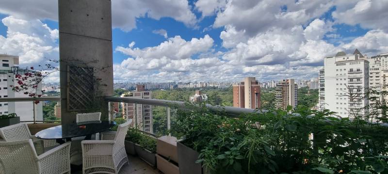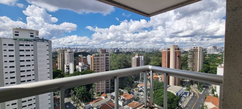 Apartamento com excepcional vista do Parque do ibirapuera, com sala ampla, com pé direito duplo, varanda confortável, e duas suítes com terraços. Automação de iluminação, persianas elétricas, bons armários e cozinha equipada. 3 vagas de garagem. Ar condicionado . Vale a pena conhecer. Face norte.