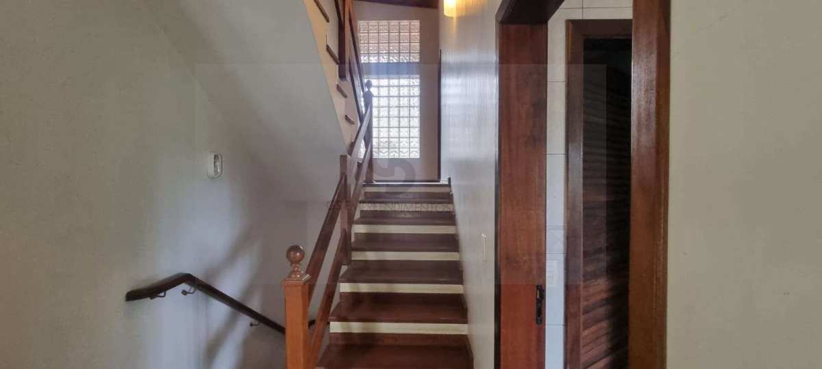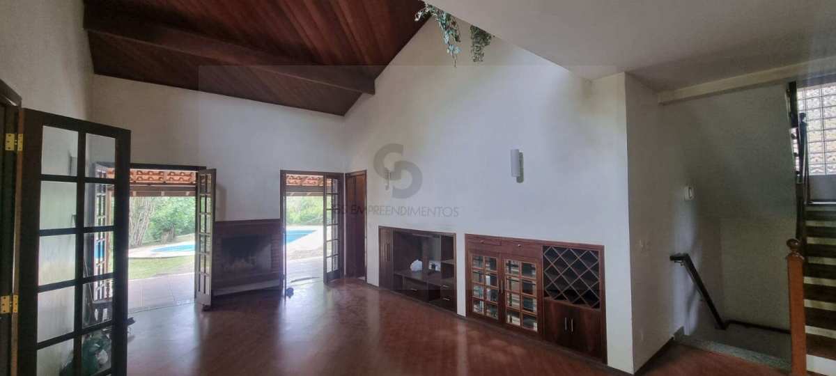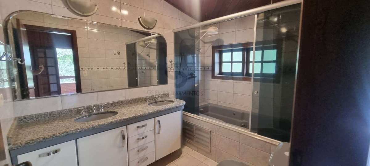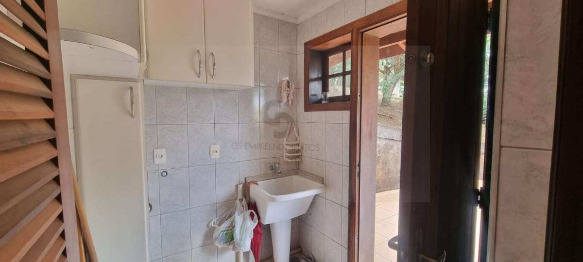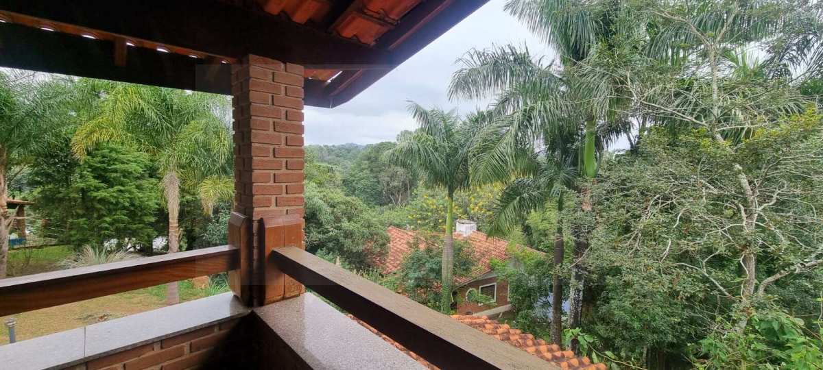 Casa em excelente estado de conservação, em condomínio muito arborizado, dos anos 80. Terreno com mais de 1.600 metros quadrados e casa com área construída de 230 m2. No andar principal temos uma ampla sala com lareira e agradável varanda em “L” . Cozinha bem equipada e espaçosa com vista externa e com passa prato voltado para a sala. Despensa generosa com prateleiras . Subindo meio andar, temos três amplos dormitórios, sendo uma suíte. Mais meio andar e temos a suíte principal com varanda e closet. Todos os dormitórios tem acesso ao exterior através de portas balcão. A casa toda é muito clara a ampla, com excelentes acabamentos e muito bem conservada. Varanda com vista para o verde e para o por do sol. Descendo um andar do nível da sala temos uma garagem coberta para dois carros e pátio de manobras onde podem ser estacionados mais quatro veículos pelo menos. Tudo muito bem mantido.