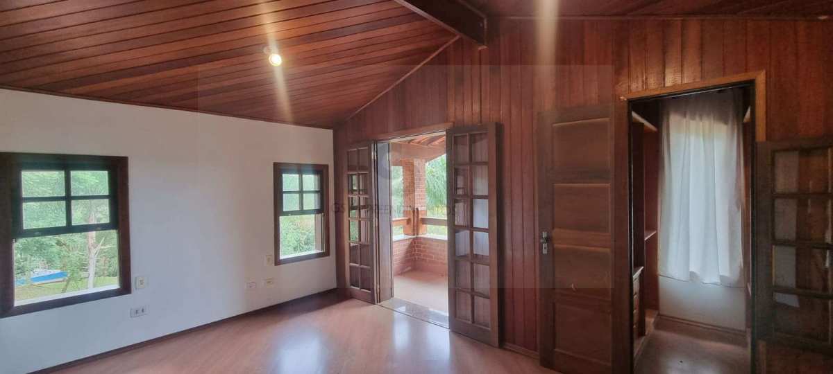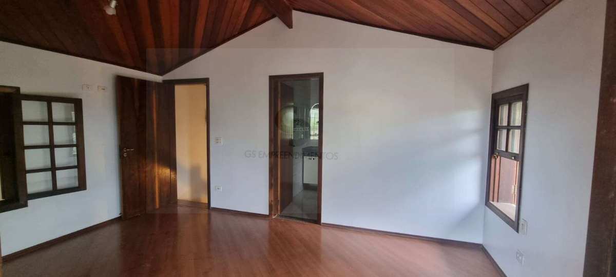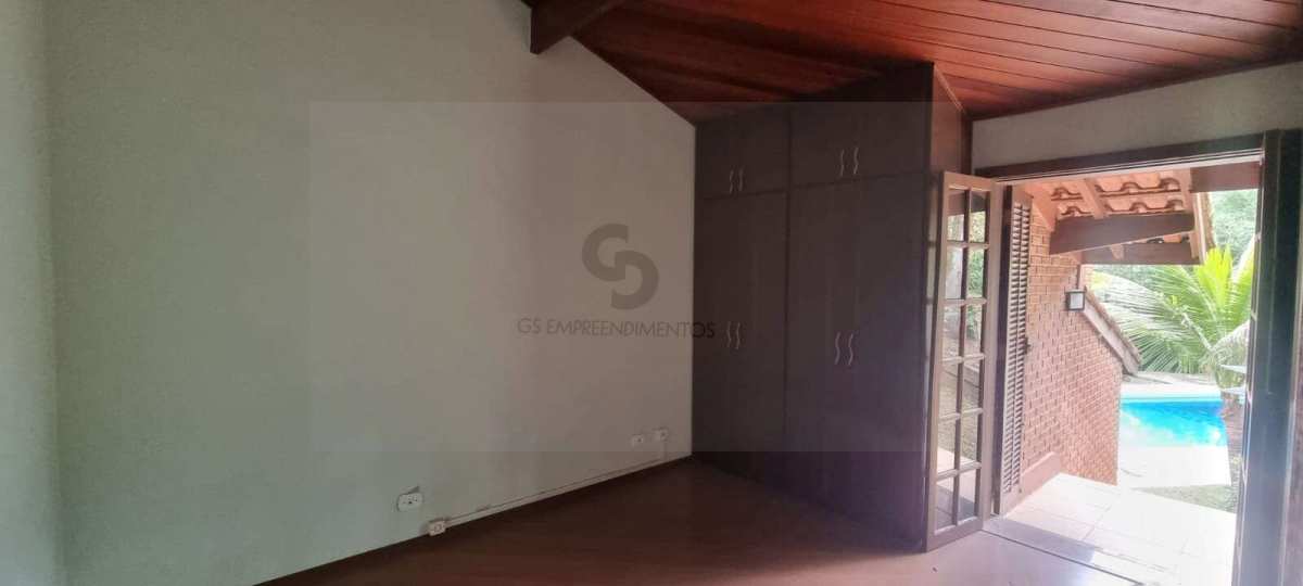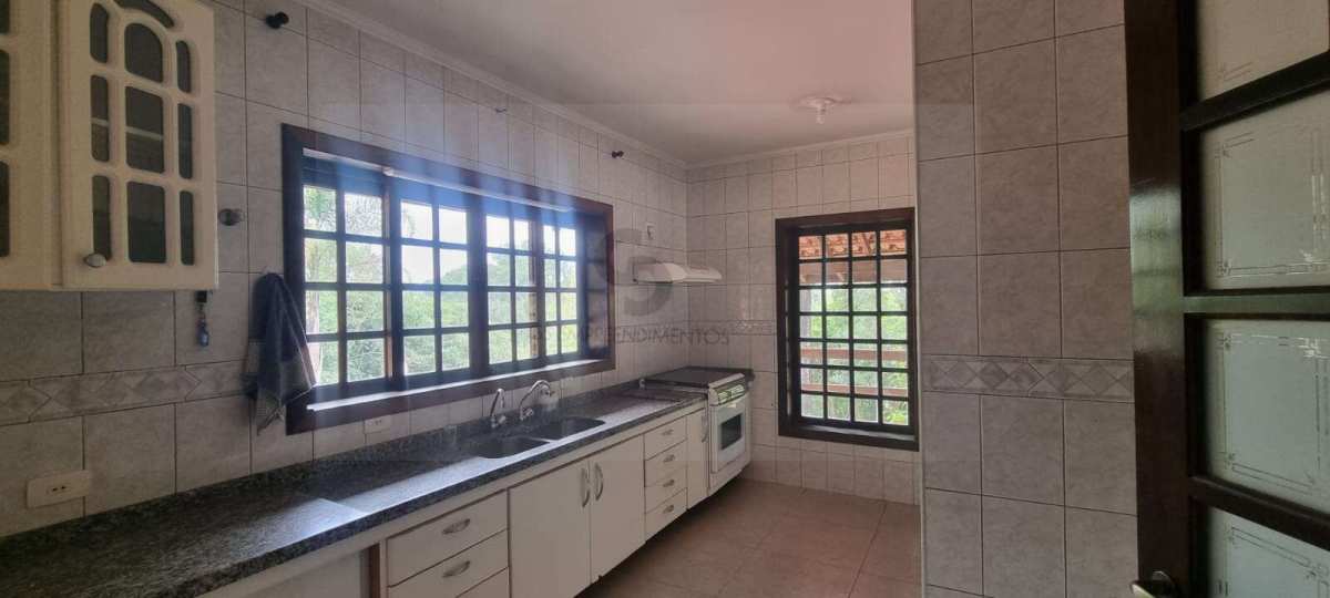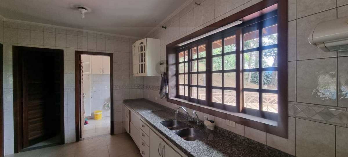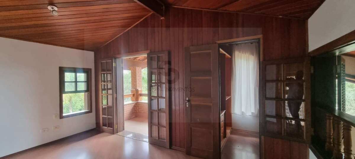 Casa em excelente estado de conservação, em condomínio muito arborizado, dos anos 80. Terreno com mais de 1.600 metros quadrados e casa com área construída de 230 m2. No andar principal temos uma ampla sala com lareira e agradável varanda em “L” . Cozinha bem equipada e espaçosa com vista externa e com passa prato voltado para a sala. Despensa generosa com prateleiras . Subindo meio andar, temos três amplos dormitórios, sendo uma suíte. Mais meio andar e temos a suíte principal com varanda e closet. Todos os dormitórios tem acesso ao exterior através de portas balcão. A casa toda é muito clara a ampla, com excelentes acabamentos e muito bem conservada. Varanda com vista para o verde e para o por do sol. Descendo um andar do nível da sala temos uma garagem coberta para dois carros e pátio de manobras onde podem ser estacionados mais quatro veículos pelo menos. Tudo muito bem mantido.